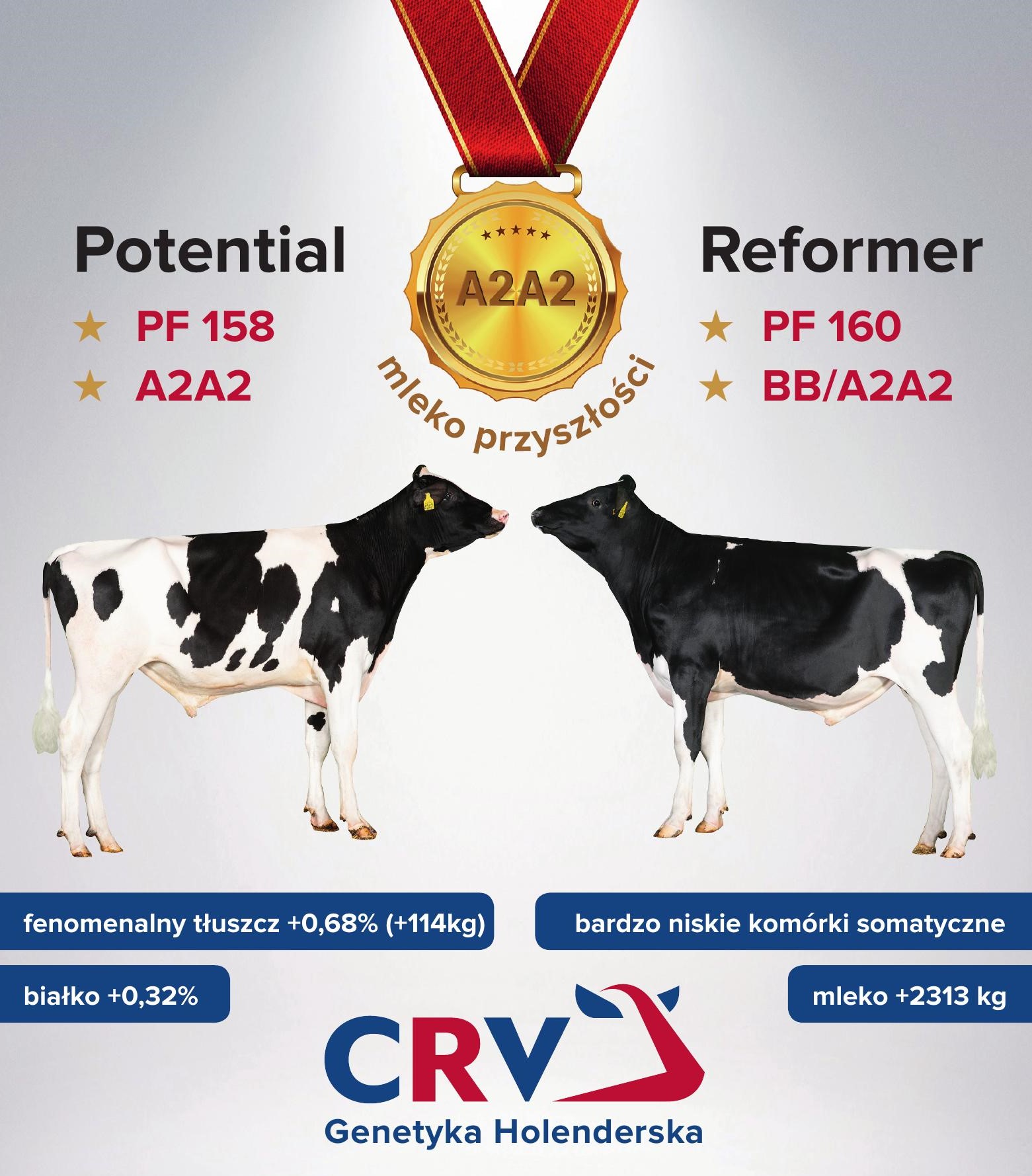 Dzisiaj pragniemy przedstawić Wam dwa ponadprzeciętne rozpłodniki przenoszące gen odpowiedzialny za produkcję mleka A2A2. Ponadprzeciętne, gdyż oprócz genotypu A2A2 posiadają one również wybitną wartość indeksu PF(160 i 158)